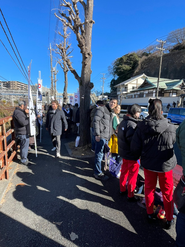 1月3日(土曜)11時過ぎから保土ヶ谷駅近くの国道1号線沿いで「箱根駅伝」沿道応援と新年会を開催いたしたところ多数の沿道応援の皆様がお集まりいただきました。